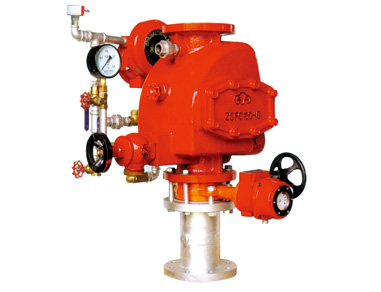 干式報(bào)警閥用于干式噴淋報(bào)警滅火消防系統(tǒng) 中,屬于系統(tǒng)消防供水的報(bào)警及控制閥門,該系統(tǒng)一般應(yīng)用于環(huán)境溫度低于4℃的建筑物中,在伺應(yīng)狀態(tài)時(shí),由系統(tǒng)管網(wǎng)中的壓縮空氣通過(guò)干式報(bào)警閥將消防壓力水封于供水側(cè),當(dāng)閉式噴頭發(fā)生動(dòng)作引起管網(wǎng)氣壓下降并達(dá)到一定值時(shí)干式報(bào)警閥打開(kāi),壓力水通過(guò)閥進(jìn) 入系統(tǒng)管網(wǎng)滅火。 性能參數(shù):