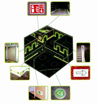 地面疏散系統(tǒng)、樓梯疏散系統(tǒng)、低位疏散指示系統(tǒng)、安全標(biāo)志批示系統(tǒng)。