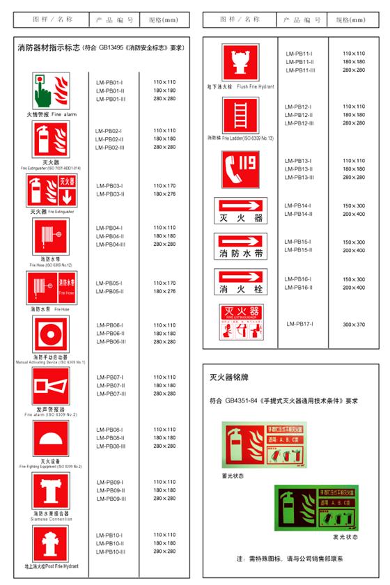 產(chǎn)品系列 蓄光自發(fā)光型消防安全標(biāo)志包括:疏散通道、疏散樓梯、緊急出口、障礙物、消防器材標(biāo)志以及警示、禁止、指令性標(biāo)志。